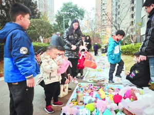“走过路过,千万不要错过,本杂货店玩具种类丰富,还可以买一送一,价格实惠……”在跳蚤市场,“小老板”们现场叫卖着,有的孩子还使出了自己的“杀手锏”,以说唱、表演等形式为自己的摊位打广告,吸引了许多居民驻足。