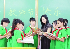 善国小学的“教师节主题班会”上,老师与学生们分享读书心得,共同庆祝第41个教师节。