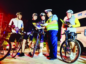 近日,市公安局交警大队值勤三中队民警向夜间骑行爱好者开展面对面交通安全宣传。民警为骑行爱好者讲解了佩戴头盔、保障车辆灯光正常、穿着反光衣物的重要性,呼吁大家遵守交规,不逆行、不闯红灯,安全有序骑行。