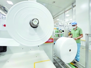 日前,爱拉森医用品有限公司的工人正在进行生产作业。该公司是一家集研发、制造、销售为一体的专注成人及婴童全类护理用品的公司,规划建设18条护理用品生产线,一期工程建成4条全智能机械臂生产线,可日产纸尿裤180万片。