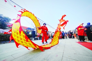 1月22日,在南沙河镇“活力漷河”衔接乡村振兴集中推进区,村民正进行甩龙表演。春节将至,该镇举行“我们的中国梦——文化进万家”春节系列活动,进一步丰富和活跃了群众精神文化生活,提升广大群众的满意度、获得感和幸福感,营造出浓浓的节日氛围。