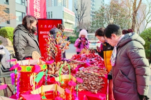 活动现场设置了多个摊位,一派热闹的景象。在制作非遗糖画区域,孩子们围绕在糖画匠人身边,好奇地看着他制作糖画,只见他以糖为墨,寥寥几笔就勾勒出一只动物的形状。除了糖画之外,现场还展示了我市特色美食和省级非物质文化遗产代表项目,有王开猪头肉、张汪板鸭等美食,居民们在品尝美食的同时,也近距离感受到了非遗文化的独特魅力。另外,现场还有快板书、民间布艺、鲁班锁等摊位,并设置了便民服务摊位,为居民提供免费的血压、血糖检测服务,帮助大家了解自身健康状况,增强健康意识。
