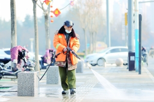 近日,环卫工作人员正在龙泉广场清理地面污渍。连日来,我市环卫部门全力开展路面污渍清理行动,环卫工人们通过采用高压水枪冲洗、人工细致刷洗相结合的方式,对广场、道路、商业街等重点区域的油污、泥渍进行集中清理,以确保地面干净整洁,为市民营造整洁靓丽的节日环境。
