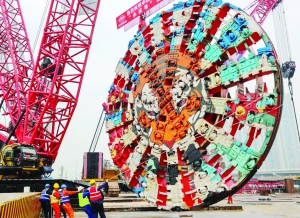 1月23日,由中铁十一局承建的广(广州站)南(广州南站)联络线“永庆号”盾构机刀盘吊装下井,重达374吨的刀盘与盾构机主体精准“组装”,广州“高铁进城”建设将进入盾构施工阶段。广南联络线建成后,京广高铁、广深港高铁、贵广高铁、南广高铁等铁路线可直达位于中心城区的广州火车站。 新华社发
