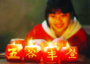 图 山东省临沂市郯城县郯城街道新二村一名小女孩观看点亮的萝卜灯。