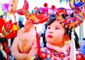 图 一名小朋友在浙江省宁波市宁海县强蛟镇峡山村迎元宵节活动中专注赏灯。新华社发