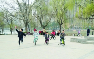 3月19日,孩子们正在河滨公园骑车玩耍。随着气温回升,我市处处洋溢着春日的活力,市民纷纷走出家门,以各种方式乐享春日时光。