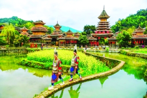 这是侗族姑娘从贵州省黎平县肇兴侗寨寨门外经过。位于贵州省黔东南苗族侗族自治州黎平县的肇兴侗寨有侗族居民逾千户。这里的侗族传统建筑风貌保存完好、民族文化源远流长。近年来,当地将谷雨节、芦笙节、侗年节等民族节日打造成旅游品牌,大力培育传统手工艺企业,使古老的侗寨在保护与传承中得以持续焕发生机。新华社发