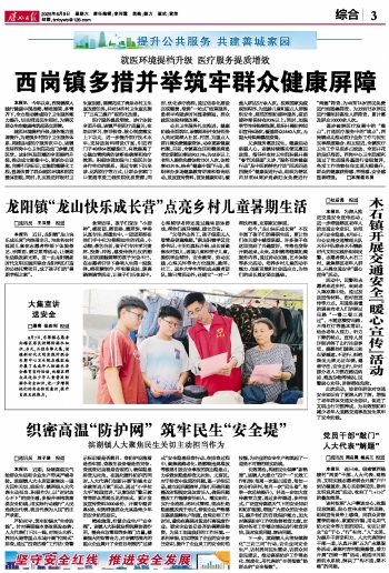 严防死守,筑牢防溺水“生命防线”。针对暑期溺水事故易发态势,人大代表们下沉一线,对岗头大桥、界河大堤等重点水域开展“拉网式”排查。通过“四查四看”工作法(查警示标识看是否醒目、查防护设施看是否牢固、查救生设备看是否完备、查巡查记录看是否规范),确保隐患排查无死角。在强化硬件防护的同时,人大代表们创新开展“防溺水安全教育进万家”活动。通过“小手拉大手”校园宣讲、“以案说法”警示教育等群众喜闻乐见的形式,累计发放宣传资料2000余份,开展专题讲座6场,有效增强群众尤其是青少年的安全防范意识。