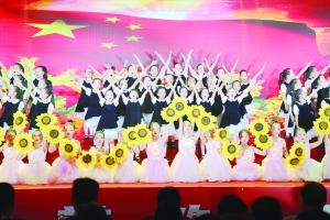 9月29日,中小学生在进行合唱展演。当天,“童声里的中国”全市庆祝中华人民共和国成立76周年中小学生合唱展演在枣庄科技职业学院举行。活动由市委宣传部、市教育和体育局主办,以“童声嘹亮,唱响中国”为主题,孩子们用悠扬且饱含热忱的声音演绎了《今天是你的生日》《歌唱祖国》等歌曲,表达对祖国无限的热爱。市领导张晓翠、孔凡华、刘琳、单金凤,市老年体协领导郭传伟出席活动。