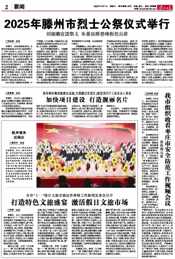 本报讯 近日,市政府新闻办举行滕州市“十一”假日文旅市场宣传营销工作新闻发布会,介绍有关情况,并回答记者提问。据了解,今年国庆、中秋“双节”,我市立足“全局谋划、亮点培树、场景突破、品牌赋能”的工作思路,以“墨乡山水,奔滕而来”为核心主题,精心筹备文化体验、自然探访、赛事盛宴三大主题共11项活动,全方位激活假日文旅市场,为游客提供舒适、惬意的假日体验。