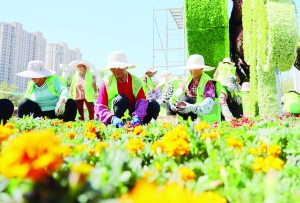 9月25日,园林工人在市民公园摆放大型花坛。国庆将至,市城发集团在市民公园精心摆放大型花坛,以鲜艳花卉搭配主题造型,营造出热烈喜庆的节日氛围,花坛错落有致、色彩明快,既美化了公园环境,也传递出对祖国的美好祝福。