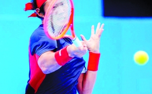 11月17日,张之臻在比赛中回球。当日,在广东横琴国际网球中心举行的第十五届全国运动会网球项目男子单打第3轮比赛中,上海队选手张之臻2比0战胜河北队选手尼敦坚赞,晋级1/4决赛。 新华社发