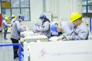 11月19日,山东鑫宏天工业科技股份有限公司的工人在车间加工产品。据了解,该公司实施了年产3万台套高端输配电系统及自控设备项目,项目技术应用于六大重化工业领域,与高校、世界500强企业合作,提供定制化解决方案,为工业生产提供智能支撑。