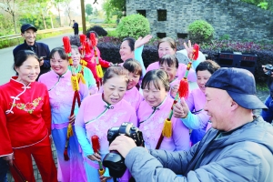 黄庄村乡村旅游区的农民与摄影师热情互动