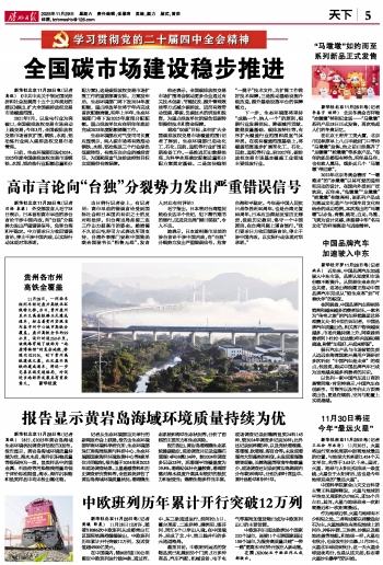 新华社北京11月28日电(记者 高敬) 28日,《2025年黄岩岛海域生态环境状况调查评估报告》发布。报告显示,黄岩岛海域环境质量持续为优,海水水质、海洋沉积物质量等级保持为一类,鱼类样品中的重金属、石油烃等污染物残留量均低于评价标准限值,海水、海洋沉积物和鱼类样品中均未检出氰化物。