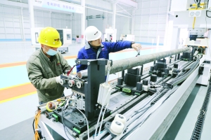 12月3日,山东沃达重工机床有限公司的工人在加工产品。为带动企业发展,该公司实施了智能精密伺服液压冲床项目,先后引进欧标静音行车、数控加工中心、数控龙门等设备百余台,融合利用数字孪生虚拟调试技术,自建大模型,加入AI自学习智能算法、数据“云存储、云服务”等技术,在行业内处于领先水平。