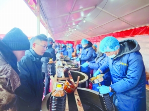 1月23日,市民在龙泉文化广场购买鼎盛酱醋。当天,2026滕州市新春消费季暨第三届鼎盛酱醋文化节在龙泉文化广场举行。活动聚焦市民刚需,整合本地特色农产品、非遗产品、日用百货、智能家电等优质品类的40余家商户入驻参展,为新春佳节增添浓郁的民俗韵味和文化气息。副市长徐方坤出席活动。