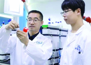 魏彦君(左)正在带领团队研发新药物