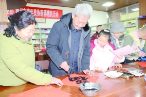 1月25日,书画家们正在为市民书写福字。当天,由市图书馆、市青年书协、市青年美协联合主办的新春惠民活动在图书馆举行,30余位书画名家齐聚滕州市图书馆,为广大市民书写春联、福字,用笔墨传递新春祝福,丰富群众精神文化生活。