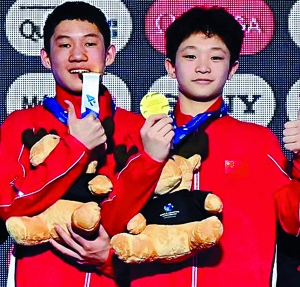 赵仁杰(右)、杨志豪在颁奖仪式上