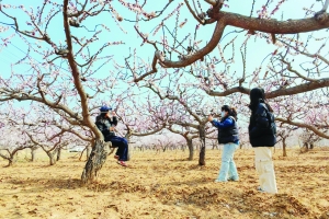 3月13日,市民正在杏树林拍照打开。草木萌发,春意渐浓。东郭镇黑石岭村百亩杏树迎来盛花期,漫山遍野杏花竞相绽放,勾勒出一幅生机盎然的春日画卷,吸引广大市民与游客前来踏青赏花、打卡游玩。