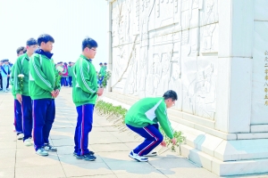 4月1日,滕州实验高级中学的学生在向烈士纪念碑献花。当天,该校组织师生走进烈士陵园开展“缅怀革命先烈、传承红色基因”清明祭英烈主题活动,通过向烈士纪念碑献花,传承红色精神,厚植爱国情怀。